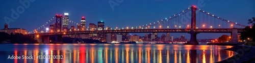 © Ashley, Fototapeta premium Illuminated Long Fellow Bridge, Boston skyline reflection, cityscape, night photography, beautiful
