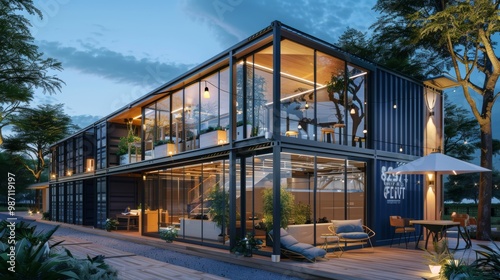 © วรวิทย์ ทรงพลยศ, Obraz premium Illuminated Luxury Eco Friendly Sustainable Modern Smart Home Surrounded by Nature at Sunset