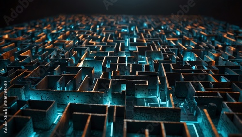 Obraz premium Illuminated maze with pathways suggesting exploration.