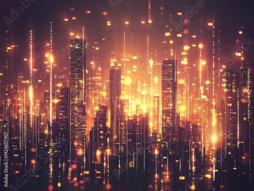 © afridwi, Fototapeta premium Illuminated Metropolis: A Nighttime Digital Cityscape