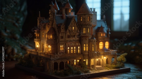 © KHAIDIR, Fototapeta premium Illuminated Miniature Mansion