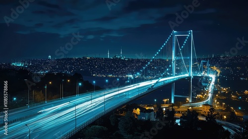 Obraz premium Illuminated Modern Suspension Bridge at Night