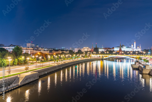 Obraz premium Illuminated Moscow Kremlin and Bolshoy Kamenny Bridge at summer night. View...