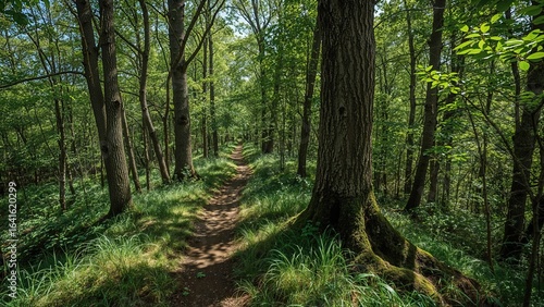 © AkuAku, Naklejka premium Illuminated Moss-Covered Nature Walk