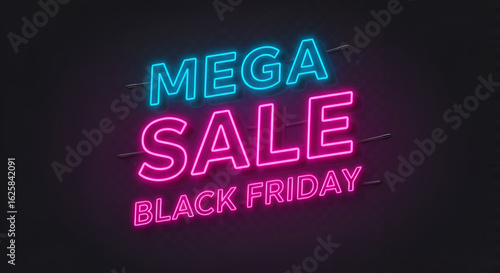 Fototapeta premium Illuminated Neon Sign Displaying Mega Sale Black Friday Promotion for Retail Events
