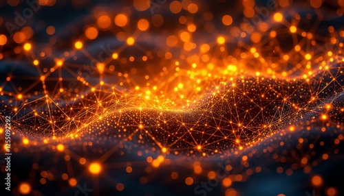 Obraz premium Illuminated network of interconnected nodes creating a dynamic data wave