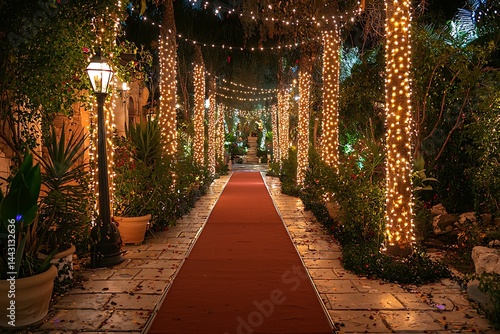 © Wardani, Fototapeta premium Illuminated pathway with red carpet