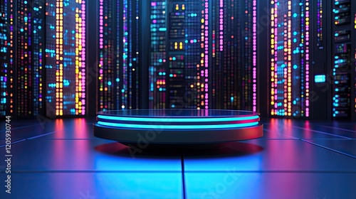 Obraz premium Illuminated Platform Before Server Racks Showing Data Processing
