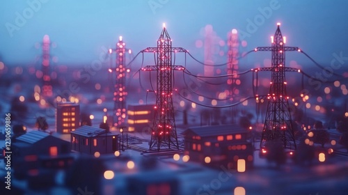 Fototapeta premium Illuminated Power Lines Over Night Cityscape