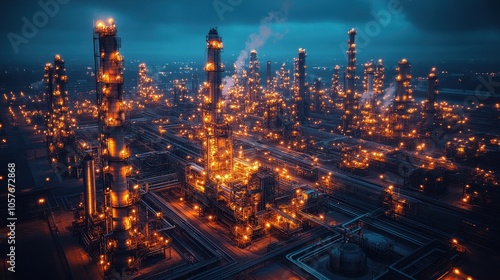 Fototapeta premium Illuminated Refinery at Night