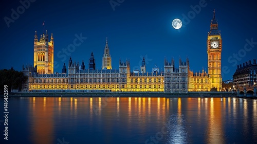 © Adama, Fototapeta premium Illuminated Riverfront Buildings Night Scene