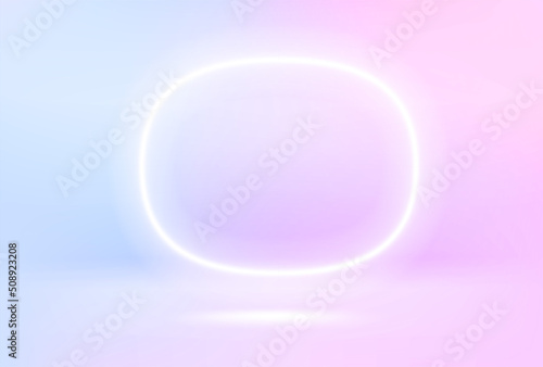 © tovovan, Fototapeta premium Illuminated room with round vivid neon light. Realistic vector 3d illustration