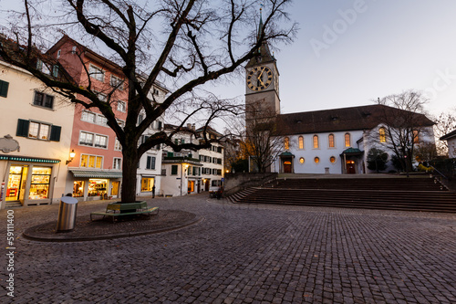 Fototapeta premium Illuminated Saint Peter Church in the Evening, Zurich, Switzerla