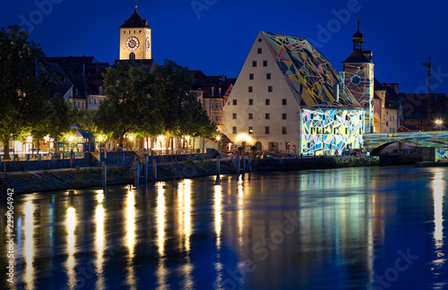 Fototapeta premium Illuminated Salzstadl in the historic city of Regensburg