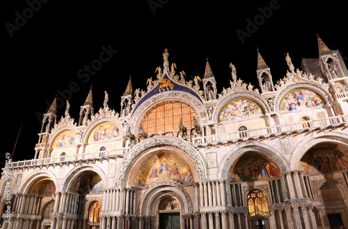 © ChiccoDodiFC, Naklejka premium Illuminated San Marco Basilica with black sky at night with long