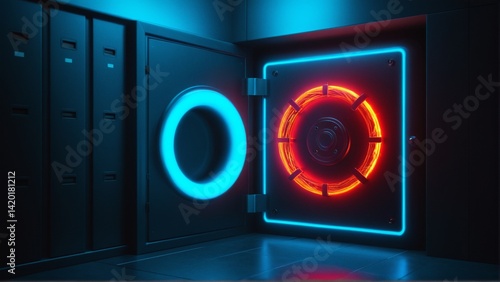 Fototapeta premium Illuminated Security: A Futuristic Vault Door with Glowing Neon Outlines and...