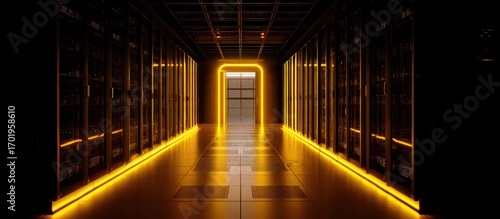 © satisfied, Obraz premium Illuminated Server Room: A Technological Journey