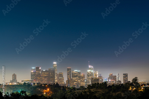 Fototapeta premium Illuminated Skyline of Los Angeles downtown at summer night time, California,...