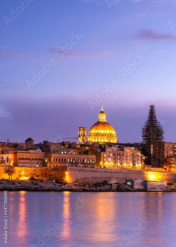 Fototapeta premium Illuminated skyline of Valletta capitol of Malta at sunset