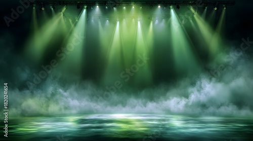 © irawan, Obraz premium Illuminated stage beams cut through low-lying atmospheric haze creating an intense visual effect