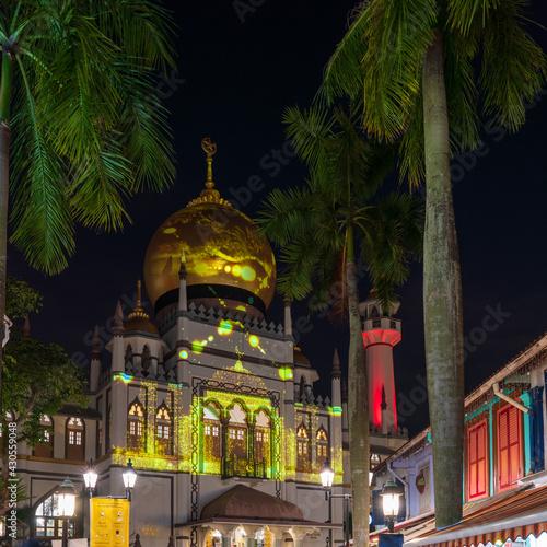 Fototapeta premium Illuminated Sultan Mosque (Masjid Sultan) at Kampong Glam, Singapore