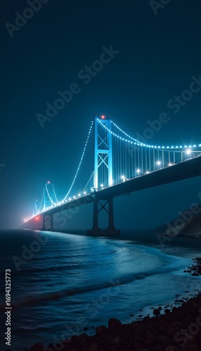 © dasOval.ch, Naklejka premium Illuminated Suspension Bridge at Night