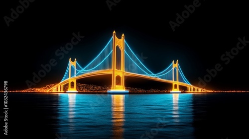 © Ai DreamscapesTH, Fototapeta premium Illuminated Suspension Bridge Over Cityscape at Night