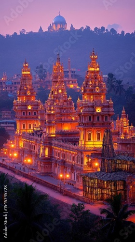 © Adi, Fototapeta premium Illuminated Temples At Dusk
