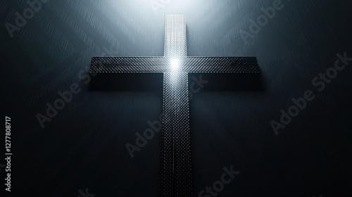 Naklejka premium Illuminated Textured Cross on Dark Background