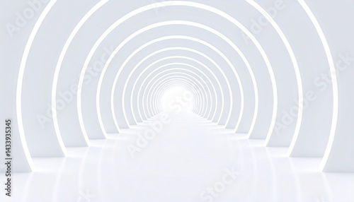 Naklejka premium Illuminated tunnel of white light modern interior design digital artwork minimalist style straight-on perspective creative concept for visual impact