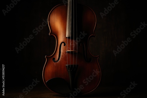 © AkuAku, Fototapeta premium Illuminated violin silhouette against a dark background