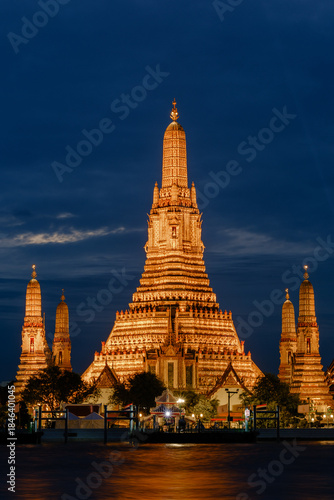Fototapeta premium Illuminated Wat Arun at twilight in Bangkok Thailand offering a stunning...