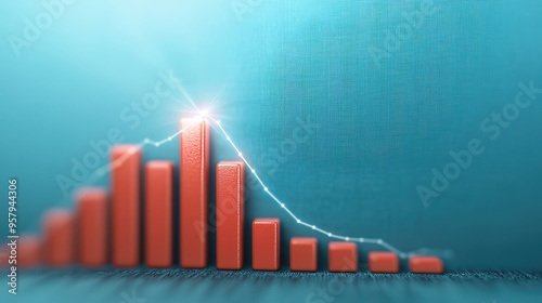 © Arthur Constantine, Fototapeta premium Illuminating Financial Growth: Bar Graphs with Light Rays and Copy Space, Selective Focus,