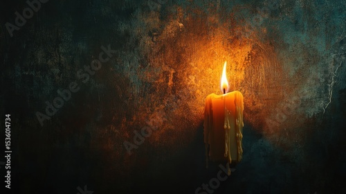 Fototapeta premium Illuminating hope: Candlelight casting warm glow on weathered wall texture
