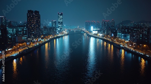 Fototapeta premium Illuminating innovation a smart city at night with interconnected technology standards urban environment aerial view for enhanced connectivity