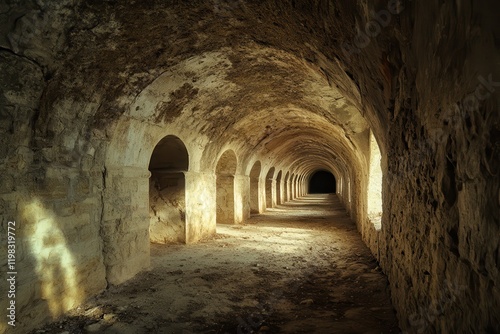 © VolumeThings, Fototapeta premium Illumination path in corridor