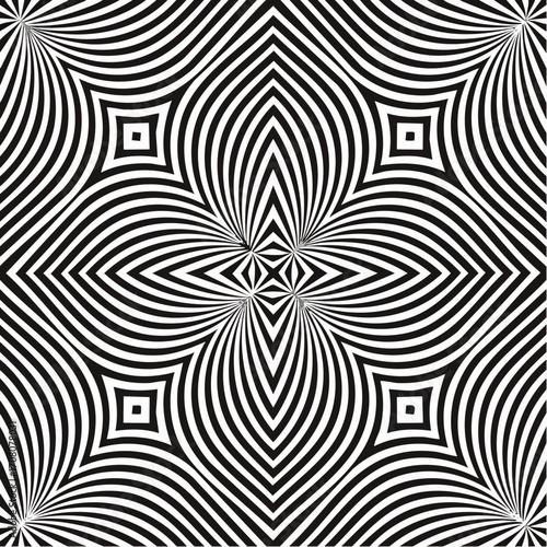 © Rindi, Obraz premium Illusion seamless pattern. Repeating psychedelic pattern with geometric shapes and optical illusion with distorted effect.