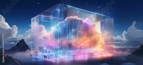 Obraz premium Illustrate a glass prism with a cloud of digital data inside, highlighting the idea