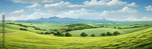 Fototapeta premium Illustrate a landscape resembling waves of verdant fields with graceful...