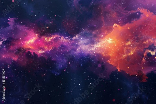 © nattapon98, Obraz premium Illustrate a side view of a digital explosion with a galaxy theme, featuring cosmic colors and shimmering particles,