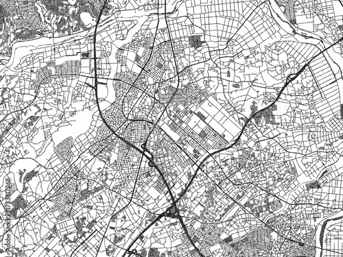 Naklejka premium Illustrated city map of Sakado, Japan, in black and white, showing roads and...