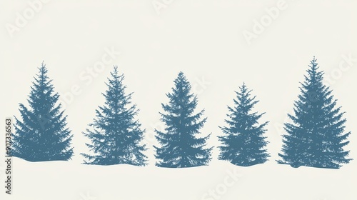 © Matthew, Fototapeta premium Illustrated evergreen trees against a plain background