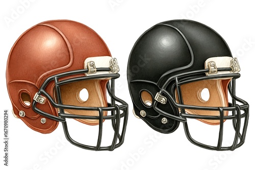 © DI, Naklejka premium Illustrated Football Helmets Brown and Black with Isolated, and Sports Equipment.