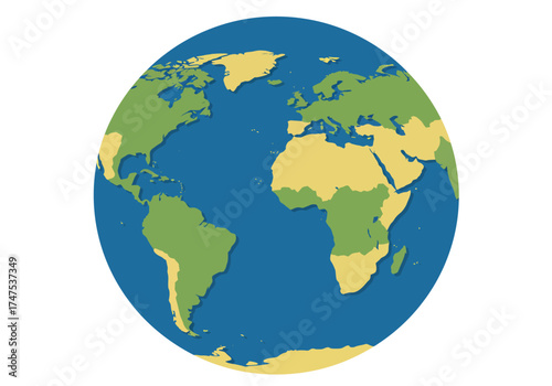 © Michelle studio, Naklejka premium Illustrated Globe Featuring Continents and Oceans in Blue Green and Yellow.