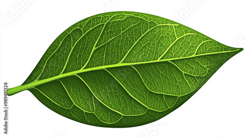 Obraz premium Illustrated Green Leaf Isolated on White Background for Nature and Eco Design
