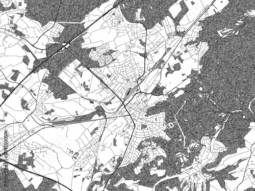 Naklejka premium Illustrated map of Homburg, Germany, in black and white hand-drawn digital...