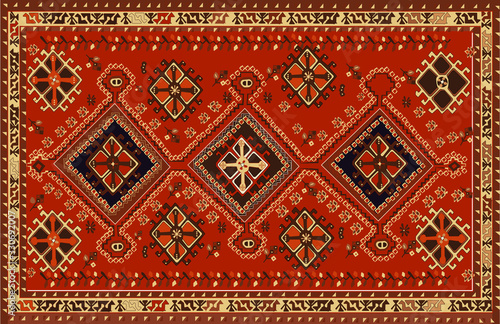 © Mohsen, Fototapeta premium Illustrated Persian carpet original design, tribal texture.