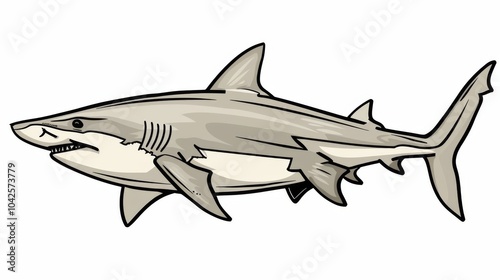 © Thinnawat, Naklejka premium Illustrated Shark on Clean White Background