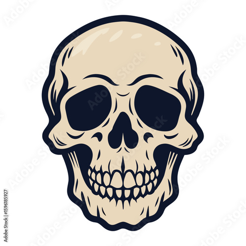 Fototapeta premium Illustrated Skull with Dark Outline and Cream Coloring, HeadOn, Isolated on White