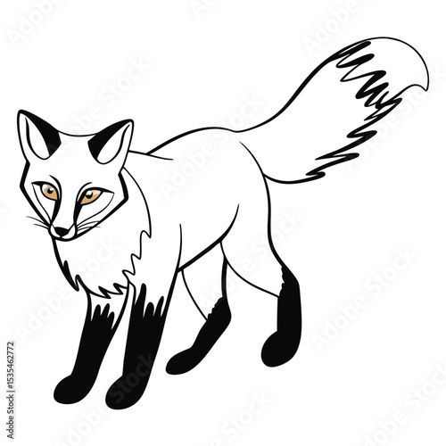 © ForhadGFX, Fototapeta premium Illustrated stylized fox with black accents in white background for wildlife and design concepts